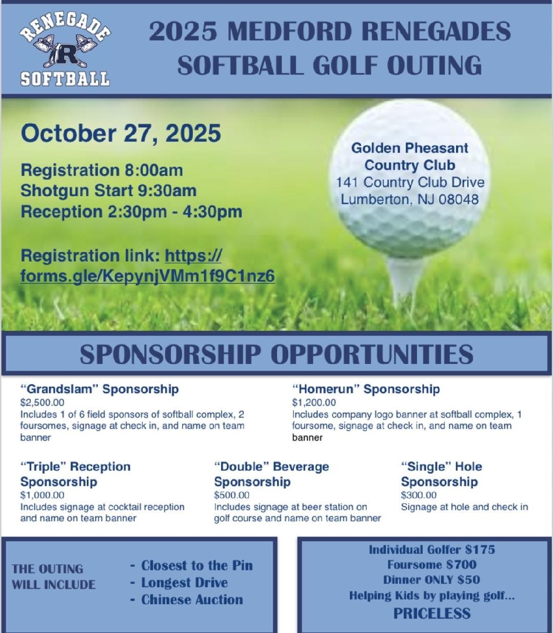 Includes 1 of 6 field sponsors of the MYAA Softball Complex, 2 foursomes, signage at check in, and name on team banner.